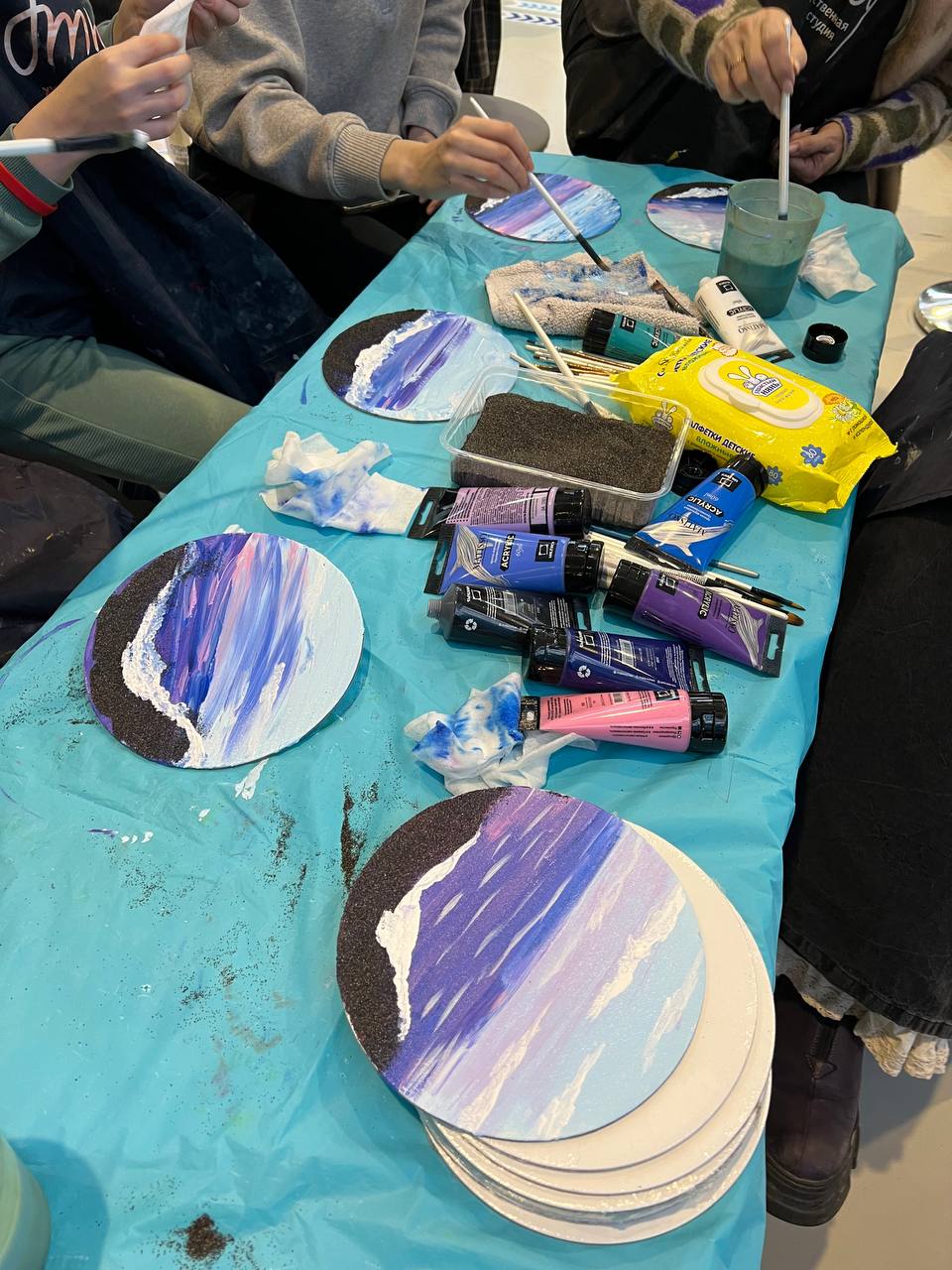 Руководитель художественной студии «Этюд» Александра Аджигитова для посетителей выставки организовала мастер-класс по живописи камчатских пейзажей акриловыми красками на холсте и значках. В конце мастер-класса на каждое изделие был нанесен вулканический песок.