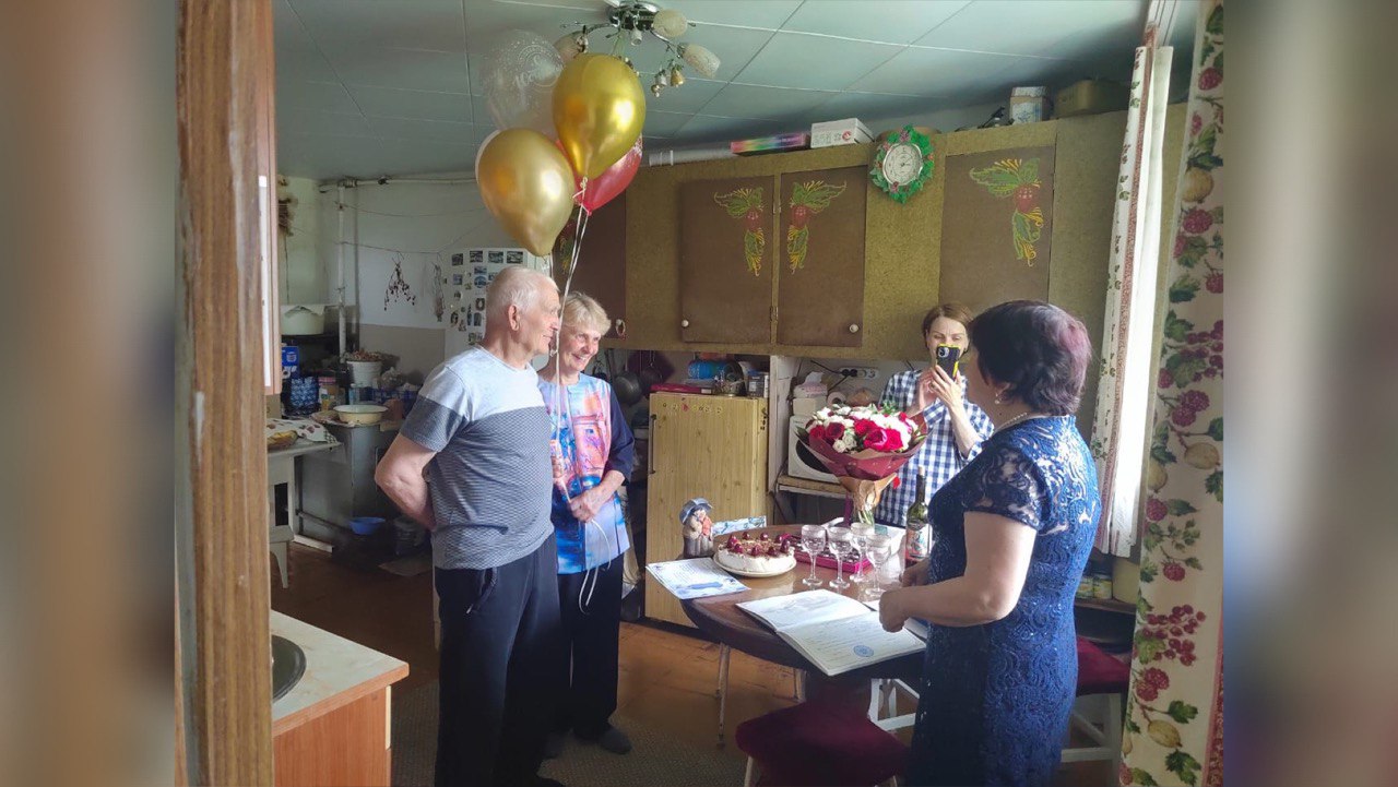 Виктора Степановича и Надежду Львовну поздравили представители администрации Соболевского района и главный специалист - эксперт отдела ЗАГС управления делами администрации Соболевского муниципального района Камчатского края Ирина Шишова.