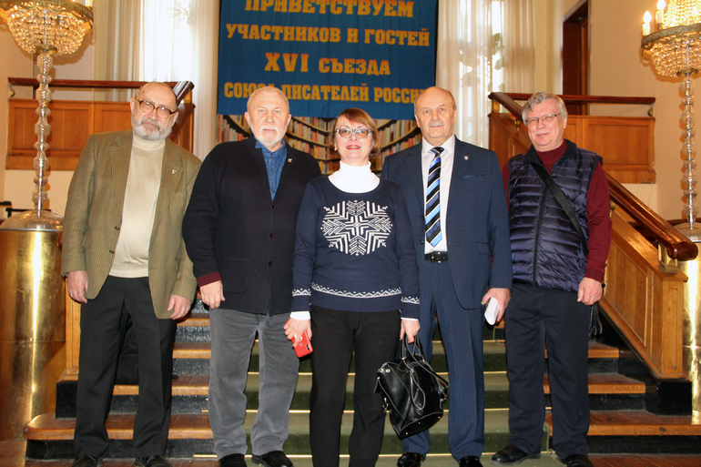 - Начну с того, что в съезде кроме меня приняли участие наши писатели Сергей Вахрин, Ирина Оснач и Владимир Татауров – итого четверо. Съезд рассмотрел три главных вопроса: отчётный доклад председателя Николая Фёдоровича Иванова, принятие нового, обновлённого Устава нашего Союза писателей и выборы нового руководящего состава Союза.