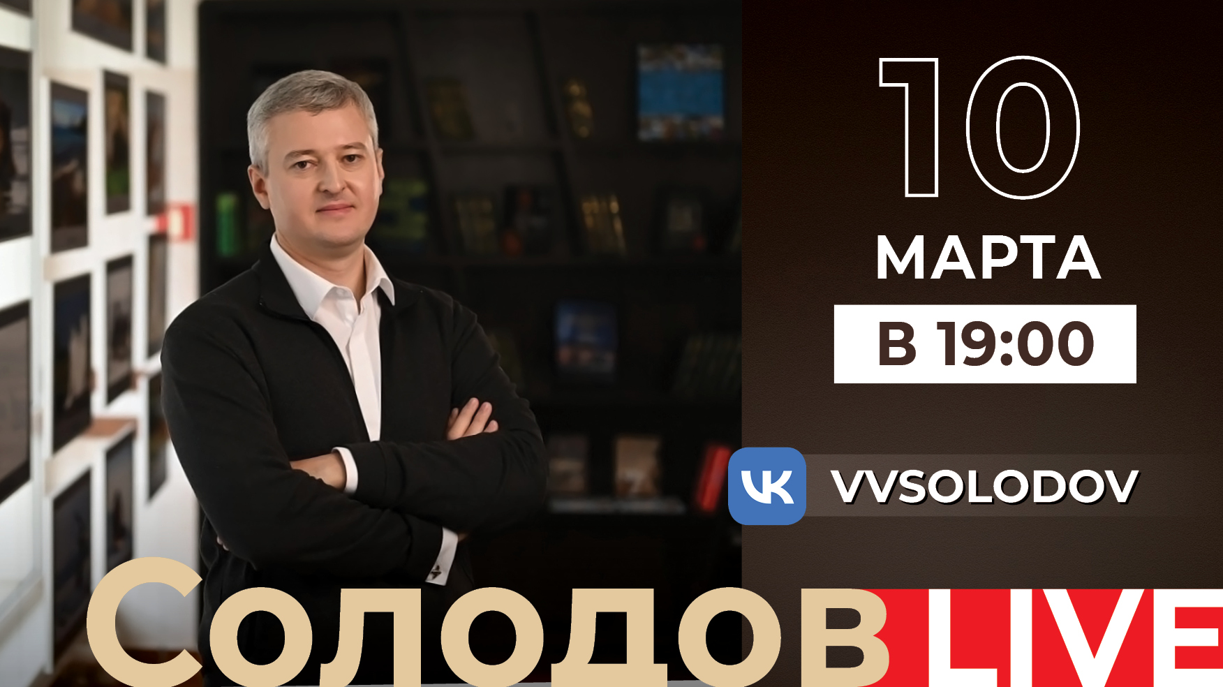 «Дорогие друзья! В эту пятницу, 10 марта, в семь часов вечера проведу традиционный прямой эфир в социальной сети “ВКонтакте” с трансляцией в Telegram и других социальных сетях. Присылайте волнующие вас вопросы, пишите их в комментариях или задавайте во время прямого эфира», — сказал Владимир Солодов .