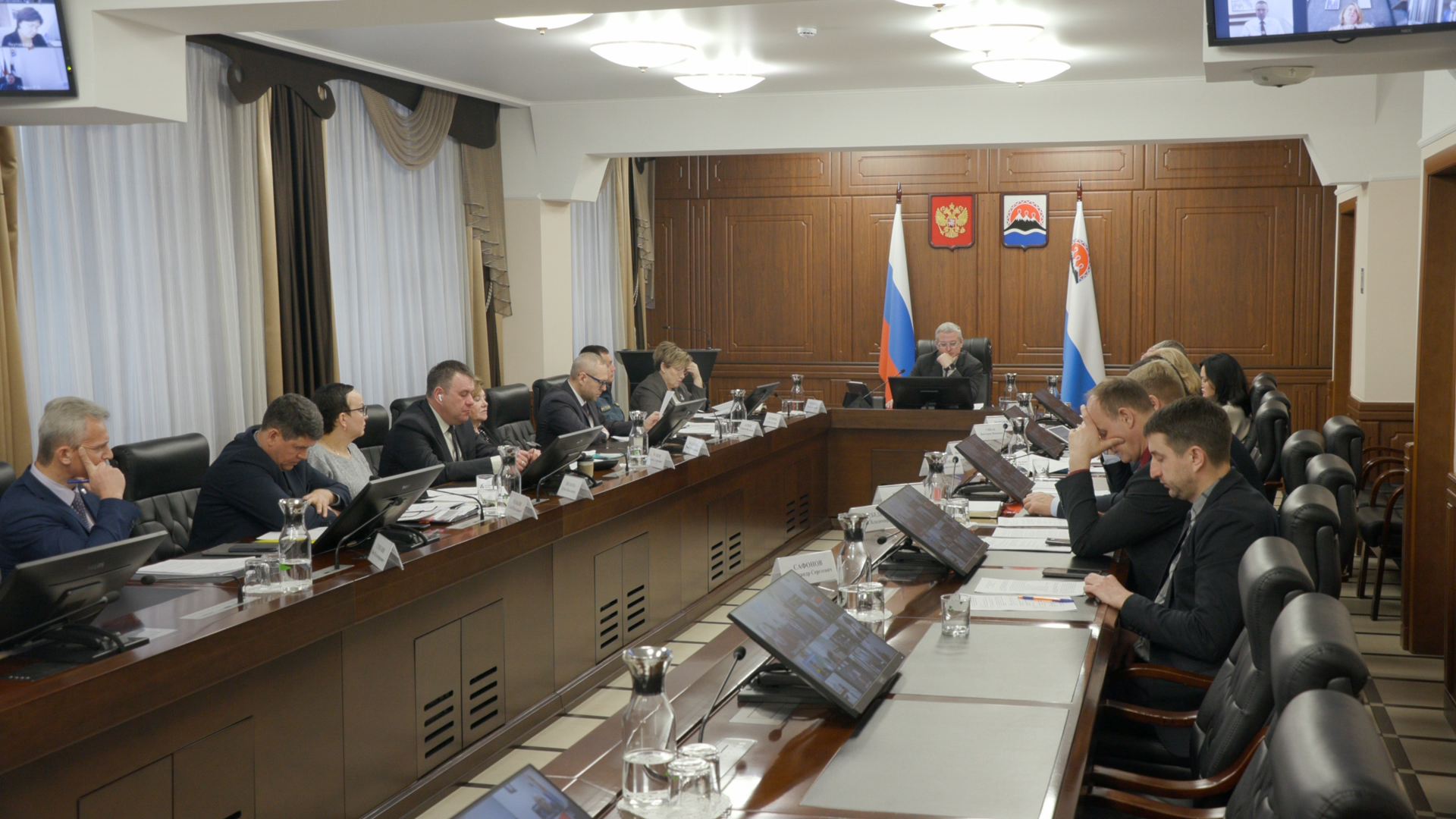 В рабочем совещания с главами муниципальных районов, муниципальных и городских округов в Камчатском крае под председательством губернатора Камчатского края принимают обсуждаются ключевые вопросы муниципалитетов. В частности, обеспечение районов и округов лекарственными средствами, планы по ремонту дорожной сети, взаимодействие с предпринимателями и другие.