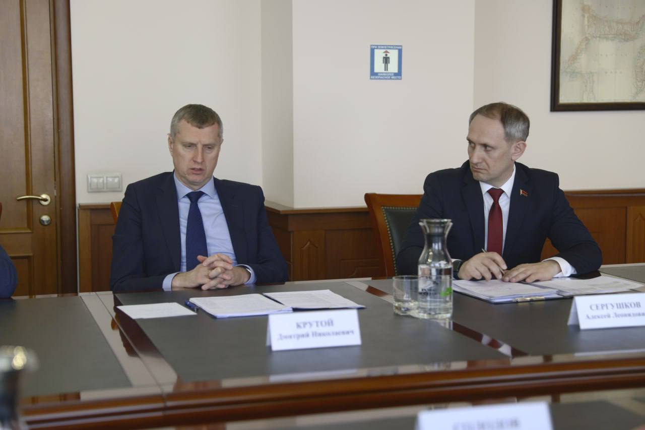 Губернатор Камчатского края Владимир Солодов провёл рабочую встречу с Чрезвычайным и Полномочным Послом Республики Беларусь в России Дмитрием Крутым, который прибыл в регион с рабочим визитом.