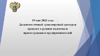 Прием состоится 19 мая 2023 года в 12 часов 00 минут (время камчатское) в Дальневосточной транспортной прокуратуре по адресу
