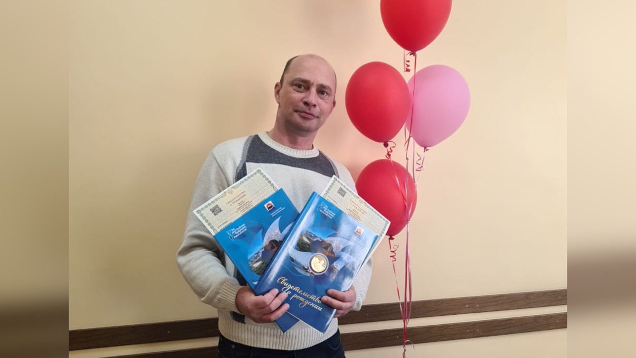 В отделе ЗАГС г. Петропавловска-Камчатского семье вручили первые документы вместе с памятными знаками «Родившемуся в Камчатском крае».