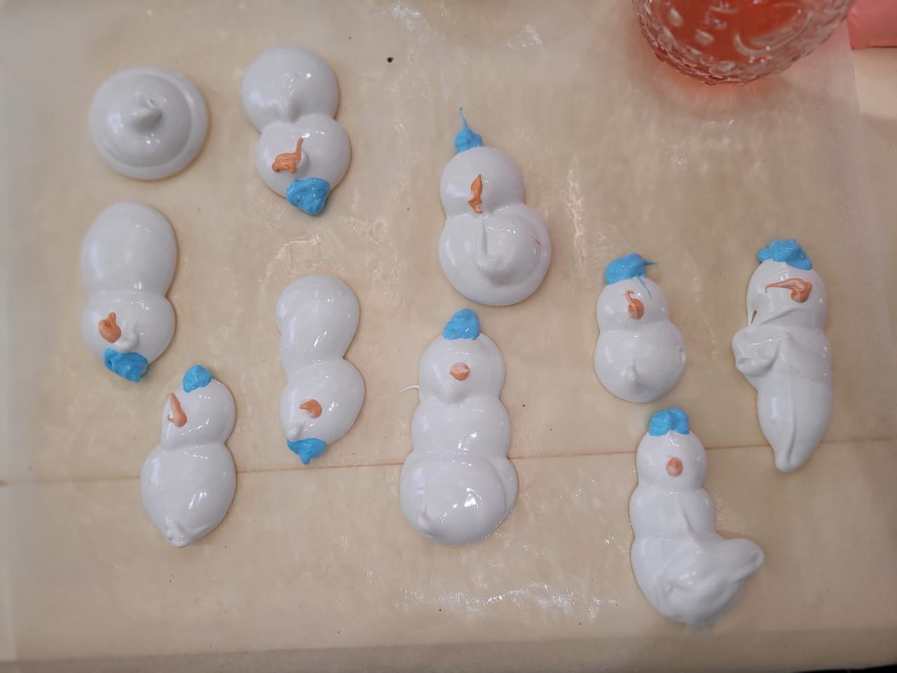 Ребята под руководством опытного шеф-повара приготовили зефирных снеговиков.