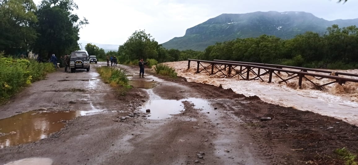 Напомним, в конце августа из-за паводка смыло мост через реку Паужетка к одноимённому селу. При переправе через реку Паужетка во время циклона перевернулись машины.