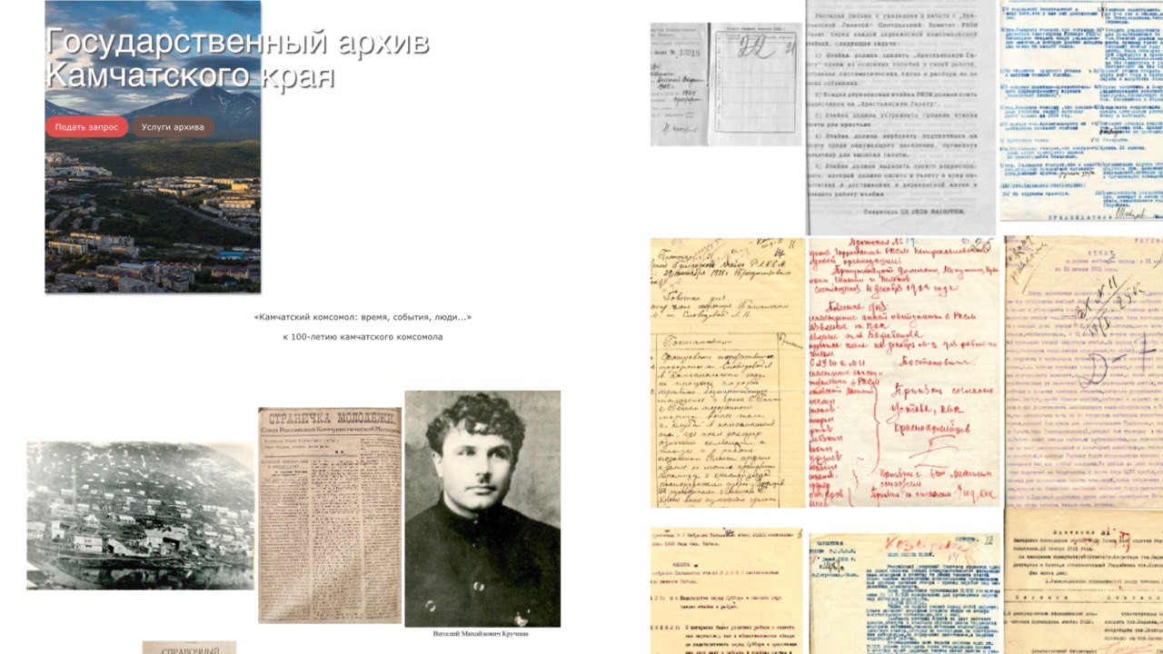 «Приглашаем ознакомиться с выставкой документов, размещённой на сайте краевого государственного архива. Она посвящена 100-летнему юбилею образования камчатского комсомола. Идея образования комсомольской организации принадлежала Виталию Михайловичу Кручине, который обратился во Владивосток с просьбой прислать на помощь активных и зрелых комсомольцев для просвещения молодёжи. Большая подготовительная работа была проделана в 1922–1923 годах и к лету 23-го молодёжь уже была готова к тому, чтобы создавать комсомольскую организацию», — рассказала начальник отдела публикации и использования документов ГАФ РФ Государственного архива Камчатского края Ольга Копотилова .