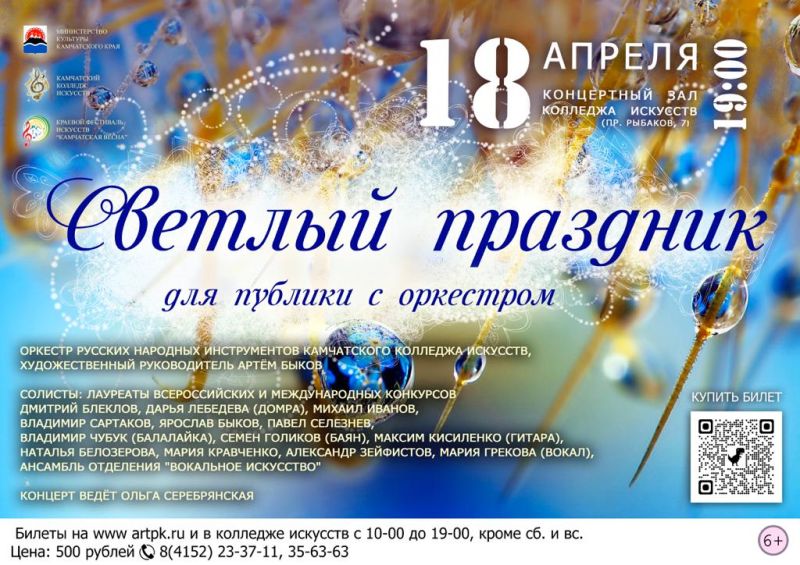 Концерт «Светлый праздник» готовят для жителей Камчатки. Музыкальную программу представит оркестр русских народных инструментов камчатского колледжа искусств – один из старейших и крупнейших коллективов полуострова,