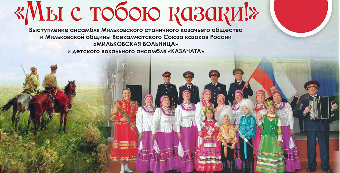 11 февраля в камчатской краевой библиотеке пройдет концерт «Мы с тобой казаки». На нем выступят ансамбль казачьей песни из Мильковского района и детский ансамбль «Казачата».
