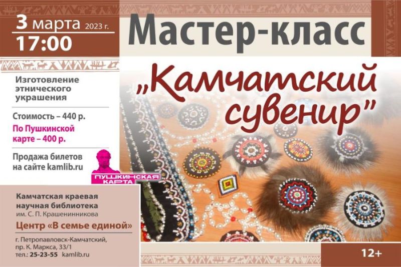 В Петропавловске-Камчатском 3 марта пройдет этнический мастер-класс, участникам которого предложат сделать традиционный камчатский сувенир, сообщили агентству «КАМЧАТКА-ИНФОРМ» в краевой библиотеке им.