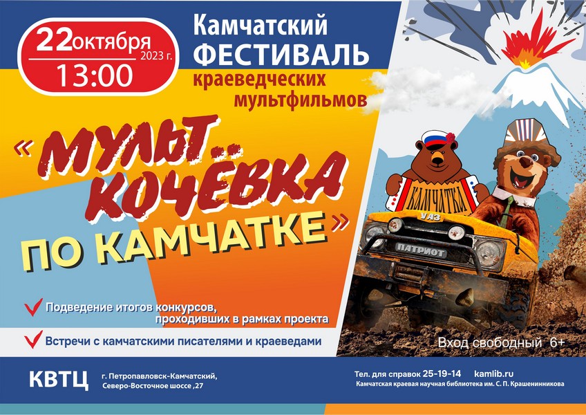 22 октября состоится Камчатский фестиваль краеведческих мультфильмов «Мульткочевка по Камчатке»