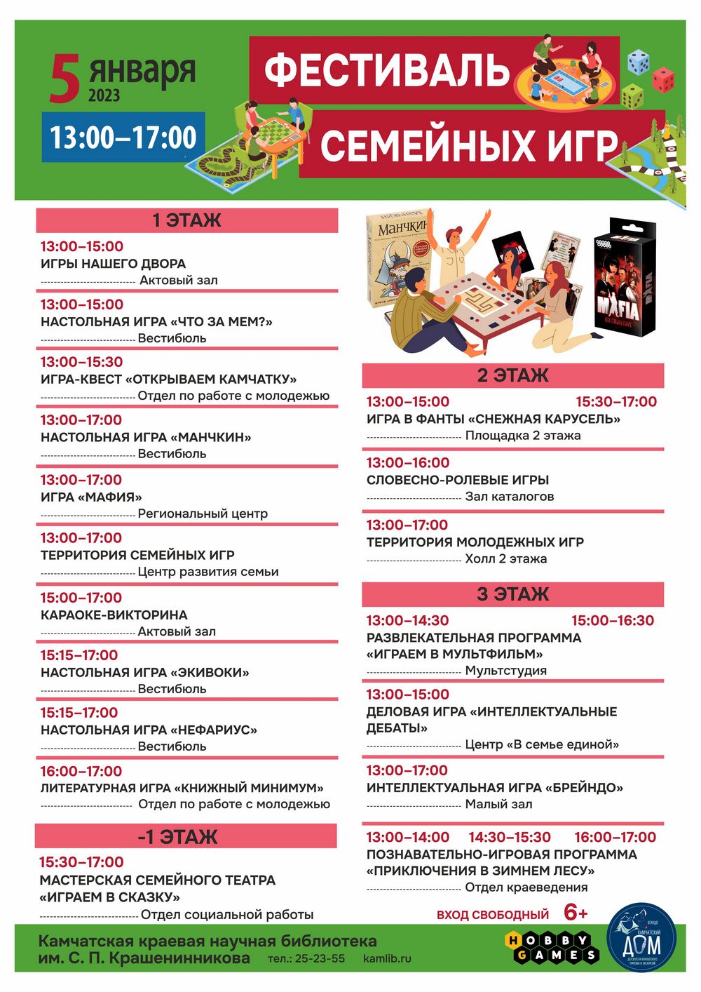 5 января с 13:00 до 17:00 в Камчатской краевой научной библиотеке им. С. П. Крашенинникова пройдет Фестиваль семейных игр (6+), сообщает ИА KamchatkaMedia со ссылкой на пресс-службу библиотеки.