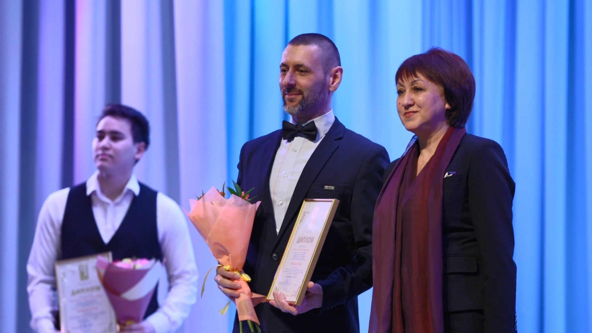На торжественной церемонии состоялось награждение абсолютного победителя регионального конкурса «Воспитать человека», который проходил в рамках Года педагога и наставника с 6 по 10 февраля. Победителем конкурса стал учитель английского языка петропавловской школы №1 Тарас Приведенцев. Также были названы имена двух лауреатов конкурса: педагог-организатор школы № 2 п. Усть-Камчатск Елена Коровкина и воспитатель петропавловской школы № 1 и Александра Желткова.