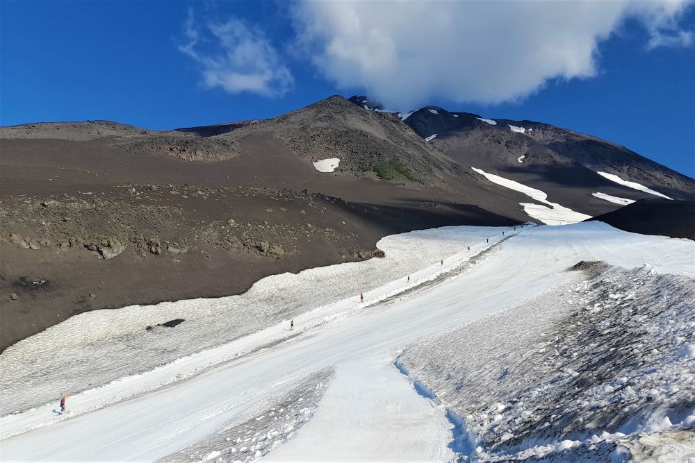 Июльское межсезонье камчатские горнолыжники провели на Козельском вулкане.
