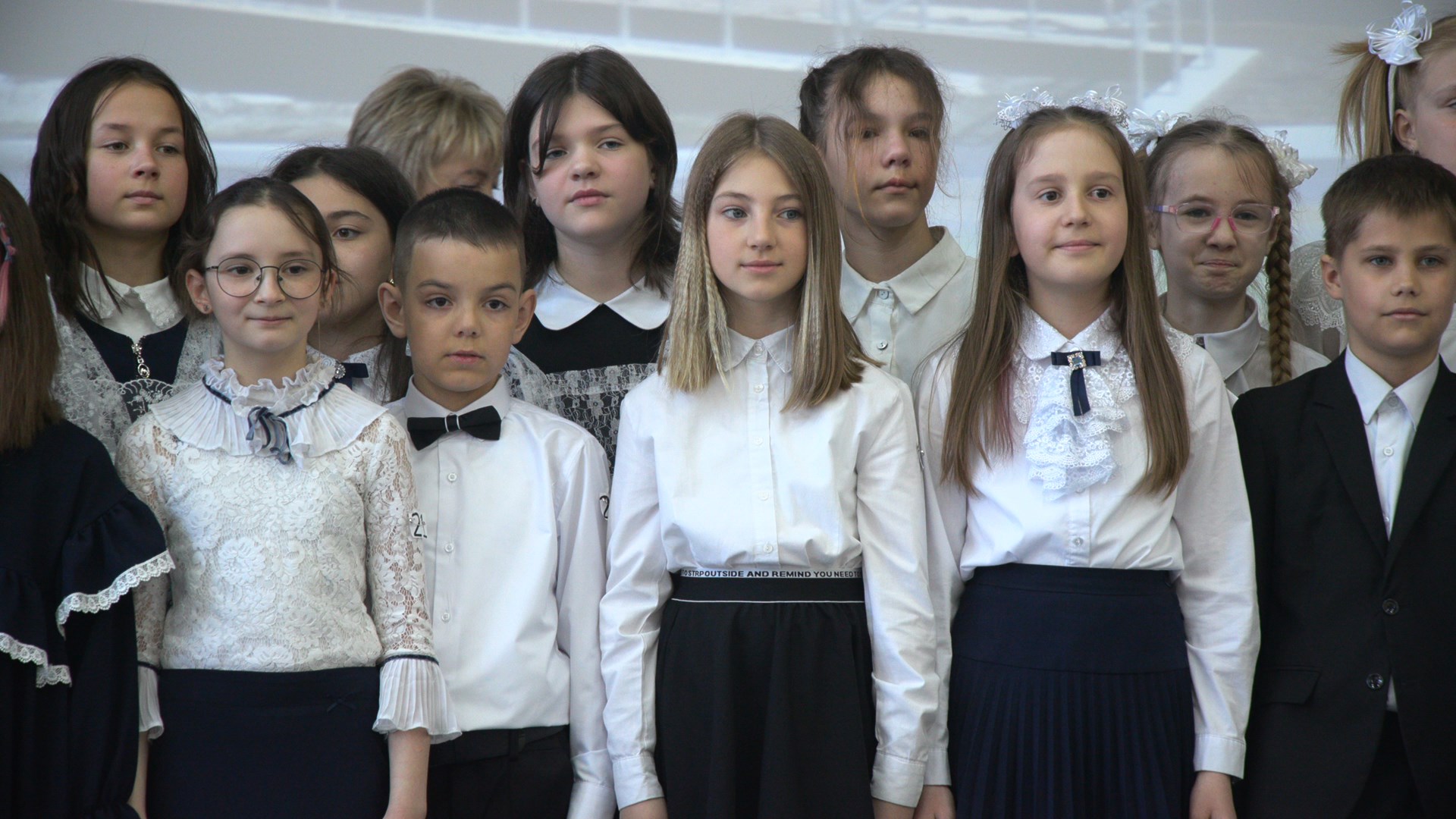 «Дорогие ребята, я искренне хочу вас поздравить с завершением начальной ступени обучения. В следующем учебном году вы придёте учиться уже именно в эту, светлую, красивую, ждущую вас всех школу. Здесь, хорошо, весело, но нужно обязательно учиться и все ваши знания, которые вы получили в начальной школе, вы принесёте в старшую. А родители будут вас поддерживать, потому что образовательный процесс для вас будет построен по-другому. Но это будет потом. А сегодня мы все, вместе с родителями поздравляем вас с окончанием обучения в начальной школе. За эти годы вы все сроднились, а классные руководители стали для вас “вторыми мамами”. Когда вы только пришли в 1-й класс, то были робкими, стеснительными, не знающими школьных правил малышами. А сейчас вы выросли, окрепли, достигли весомых результатов в учёбе, и мы очень вами гордимся!» — сказала заместитель директора по воспитательной работе школы № 33 Ирина Дубинец .
