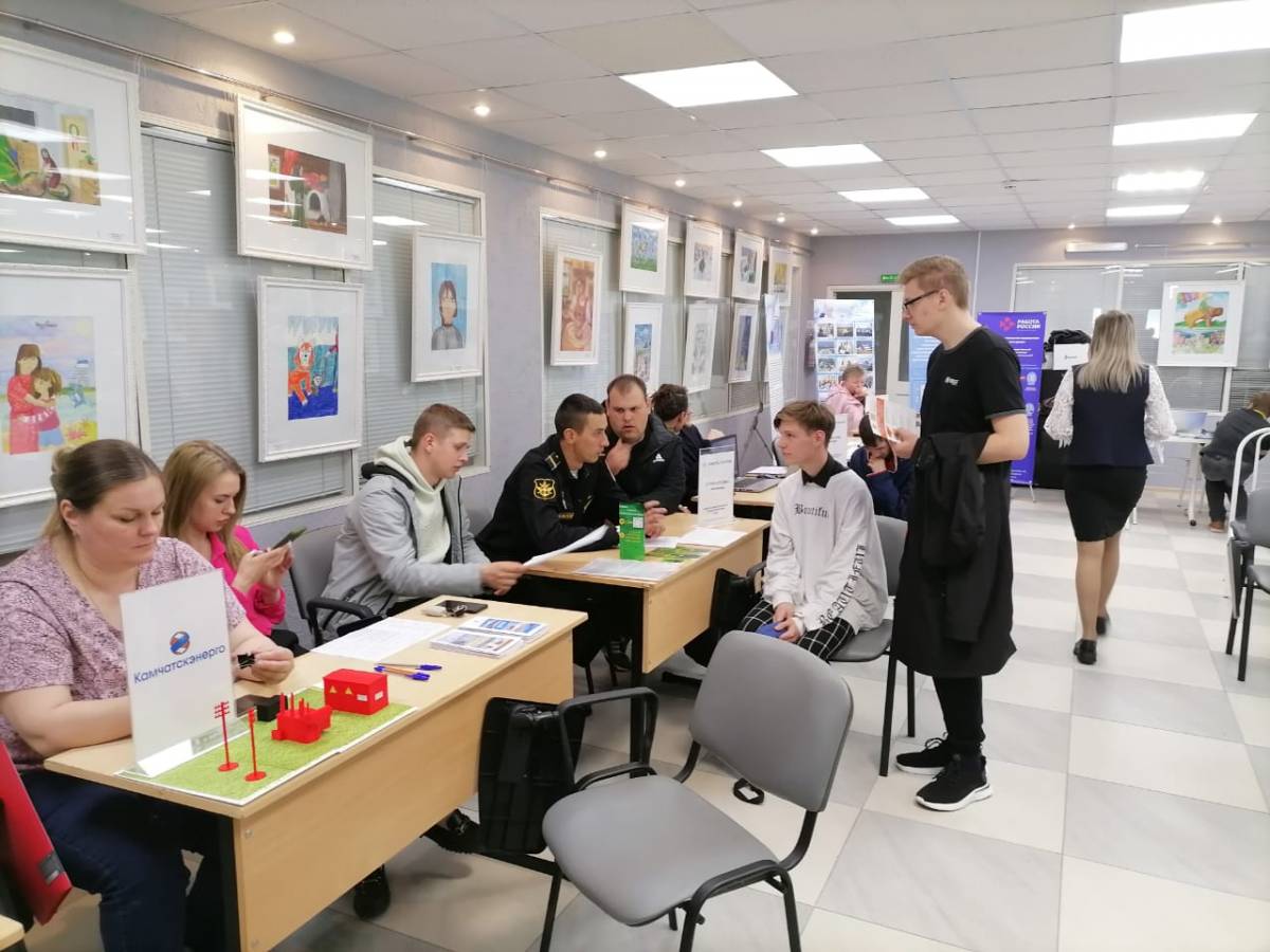 На ярмарке трудоустройства в Петропавловске-Камчатском развёрнут пункт отбора на военную службу по контракту по Камчатскому краю. Представители различных правоохранительных органов и воинских частей рассказывают о преимуществах службы и помогают с заполнением документов.