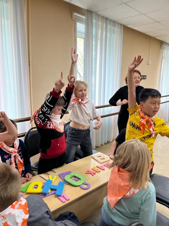 На площадке звучала музыка, юных гостей встречали улыбками – да здравствует детство, да здравствуют каникулы! Ребята разделились на команды. Получили наборы объемных букв, из которых нужно было составить названия команд.