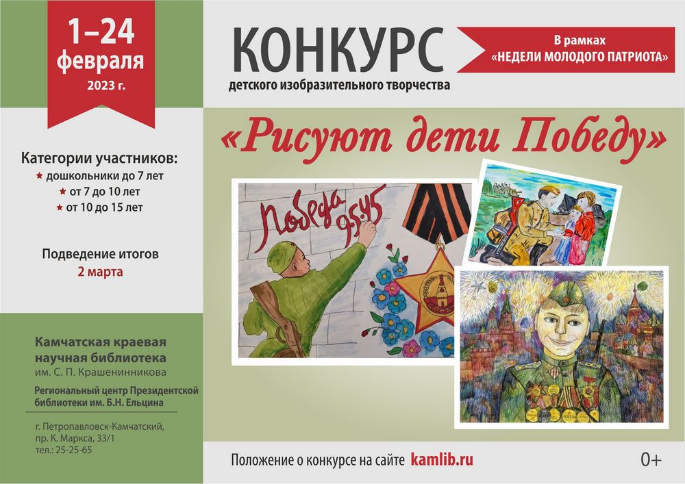1 февраля стартует конкурс детского изобразительного творчества «Рисуют дети Победу». Он пройдет в рамках ежегодной акции «Неделя молодого патриота». Принять участие в нем смогут ребята в возрасте от 7 до 15 лет.