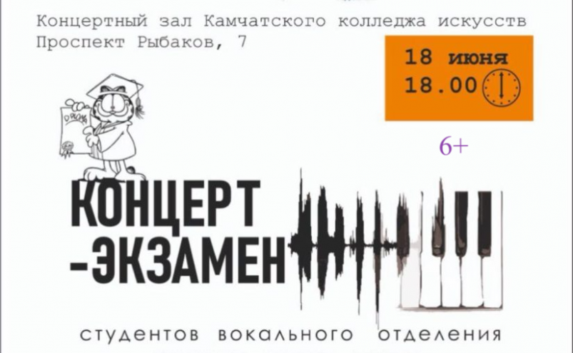 18 июня Камчатский колледж искусств приглашает всех желающих на концерт-экзамен (6+) студентов отделения "Вокальное искусство", сообщили ИА KamchatkaMedia организаторы мероприятия.
