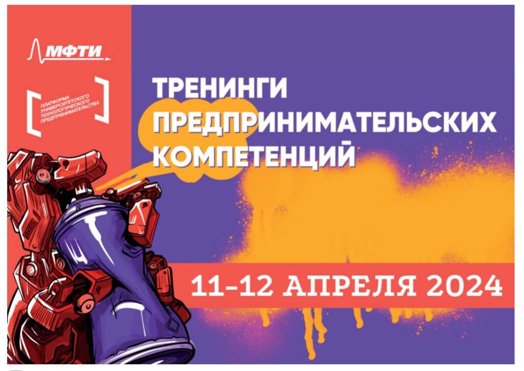 Тренинг пройдет 11-12 апреля с 9:00 до 17:00 в формате игры, во время которой вы сможете пройти все этапы создания стартапа. В ходе игры ты сможешь не только поработать над своей идеей проекта, но и решить предложенный кейс. Каждый получит сертификат участия и памятные призы, а самые активные получат отдельные призы от организаторов. Регистрируйся! И начни свой стартап! Будет весело! https://study-techtraining.mipt.ru/ По ссылке выбирайте нужный вам тренинг (КамчатГТУ, 11-12 апреля 2024), который, возможно, изменит вашу жизнь! Тренинг проведет бизнес-тренер (Иван Холодилин), общение с которым поможет в поиске своих предпринимательских талантов и выборе траектории их развития.