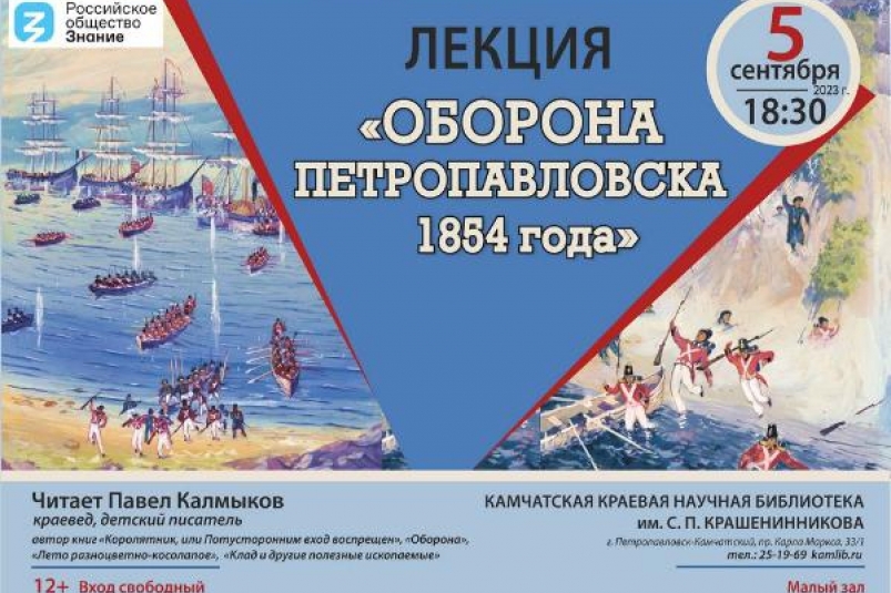 Жителей и гостей краевого центра, интересующихся историей Камчатки, приглашают на лекцию "Оборона Петропаворвска 1854 года" (12+). Ее прочитает краевед, детский писатель Павел Калмыков (автор книг "Королятник, или Потусторонним вход воспрещен", "Оборона", "Лето разноцветно-косолапое", "Клад и другие полезные ископаемые"), сообщает ИА KamchatkaMedia со ссылкой на Камчатскую краевую научную библиотеку им. С. П. Крашенинникова.