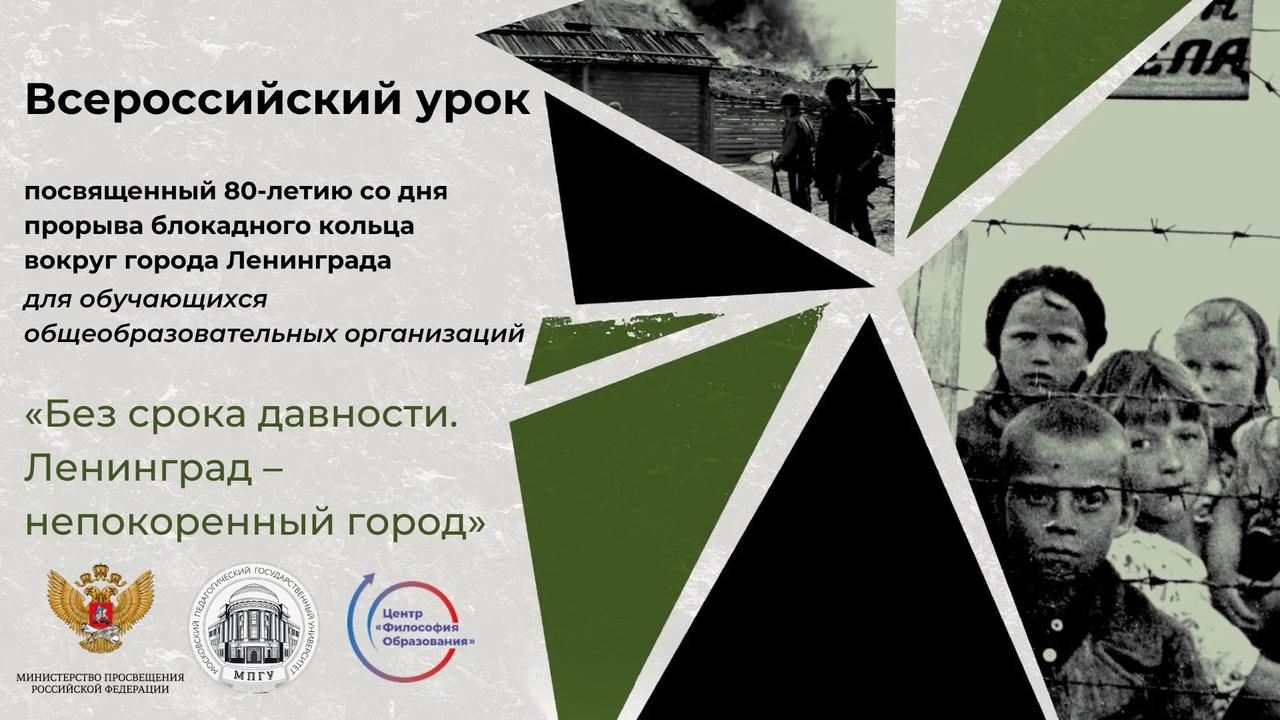 Образовательные организации Камчатского края приглашают принять участие в акции – урок «Без срока давности: Ленинград – непокоренный город», в рамках Всероссийской акции, посвященной Дню полного освобождения Ленинграда от фашистской блокады.