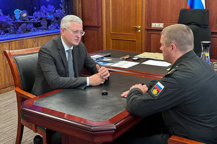 Губернатор Камчатского края Владимир Солодов и командующий Тихоокеанским флотом России Виктор Лиина провели двустороннюю встречу, в ходе которой обсудили различные вопросы, в том числе связанные с поддержкой членов семей участников специальной военной операции и усилением материально-технической базы полигона «Радыгино».