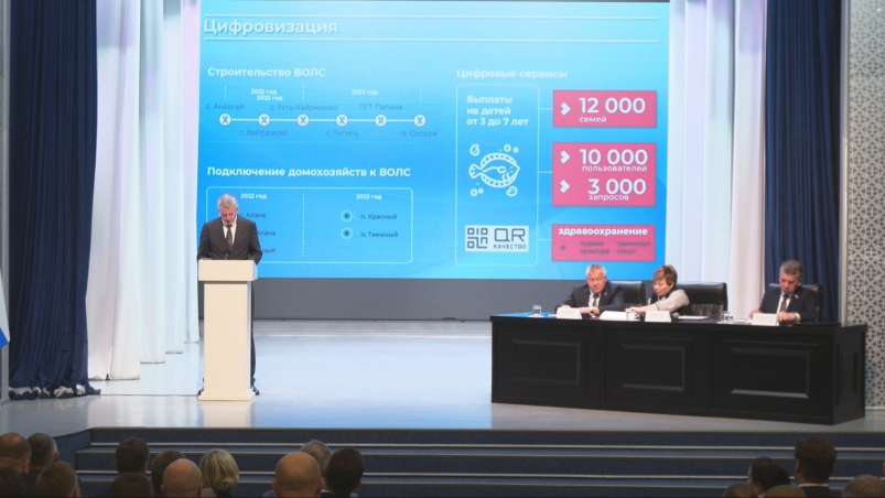 "Хочу отметить вопросы, связанные с цифровизацией. Все основные социальные услуги, их качество и время, затраченное на их оказание сокращаются и по возможности переходят в электронный формат. Ключевой проблемой является низкая скорость и доступность интернета в отдаленных поселках региона. Мы продолжаем ключевой проект в этой части. В 2022 году завершено строительство первого участка оптоволокна по линии Анавгай — Хайрюзово — Усть-Хайрюзово по тяжелейшему рельефу и в крайне сложных климатических условиях", — рассказал глава города Владимир Солодов.