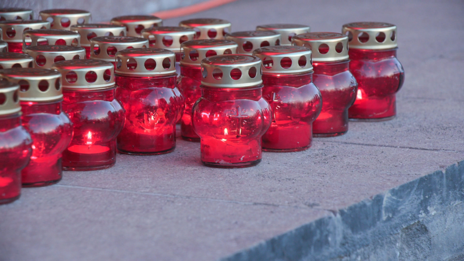 Участники акции, держа руках зажжённые лампадки, выстроились в слово: «Скорбим».
