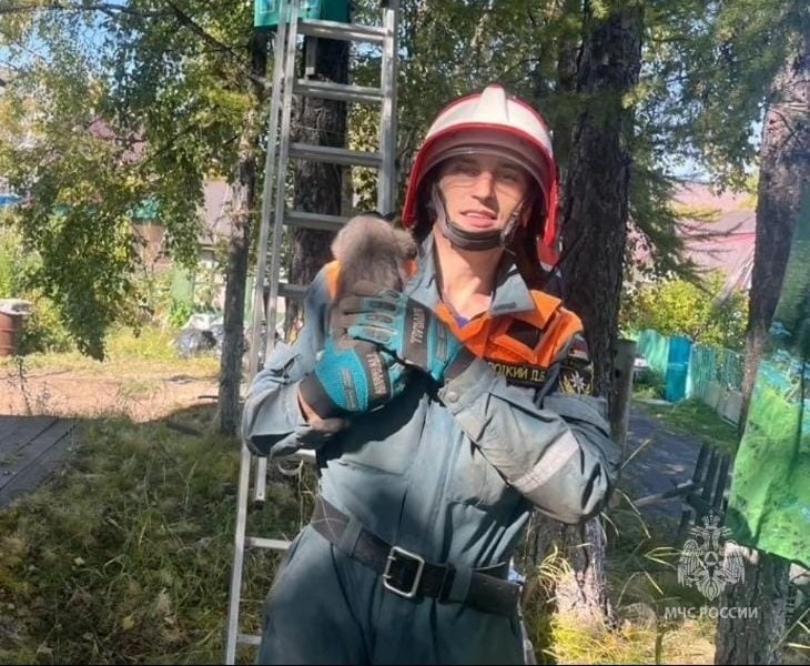 Камчатские спасатели пришли на выручку котёнку, который просидел на дереве почти два дня.