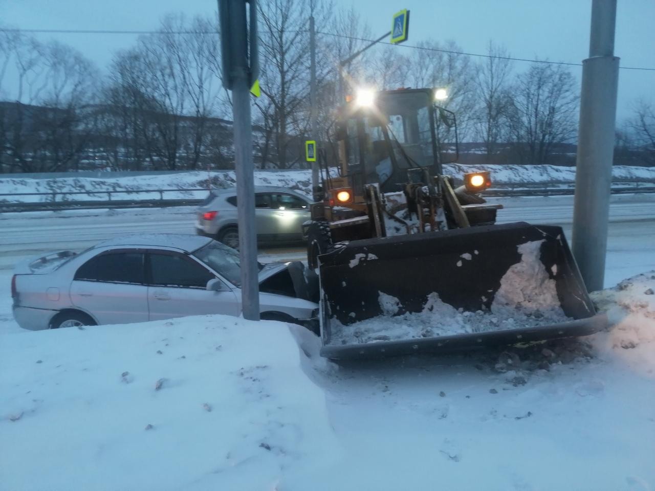 20 января в 6 час. 25 мин. в Петропавловске-Камчатском на ул. Тундровая 42-летний мужчина на погрузчике «Каматсу», производя работы по снегоочистке пешеходного перехода, не обеспечил безопасность движения, в результате чего произошло столкновение с автомобилем «Мицубиши-Ланцер» под управлением 46-летнего горожанина. В аварии пострадали водитель «Ланцера» и его 48-летний пассажир.