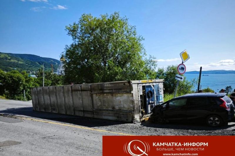 ДТП произошло 5 августа около 15:30 на улице Беринга в районе «Домика в деревне». Предварительно установлено, что с контейнеровоза произошло падение прицепа, в результате чего повреждения получила иномарка.
