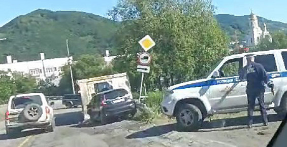 В Петропавловске-Камчатском «Тойота-Фит» врезалась в упавший на дорогу контейнер. Сообщается об одном пострадавшем.