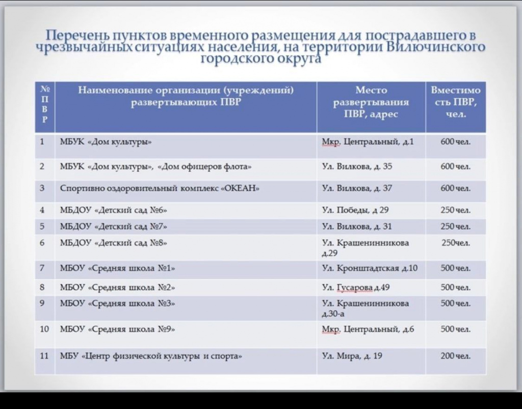 О сборных эвакуационных пунктах расположенных на территории ВГО смотрите в карточках: