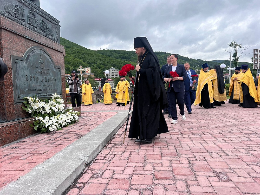 В завершение мероприятия все желающие возложили цветы к памятнику Святым апостолам Петру и Павлу.