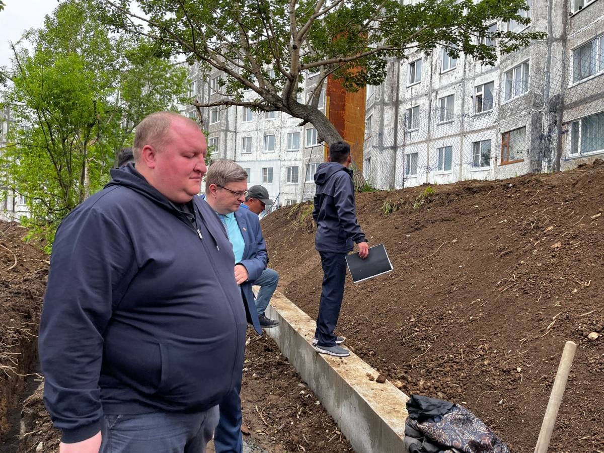 Партийный десант проверил ход ремонтных работ в сквере на СРВ