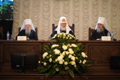 Предстоятель Русской Православной Церкви произнес вступительное слово, в котором приветствовал собравшихся и представил следующую повестку дня Архиерейского Совещания:
