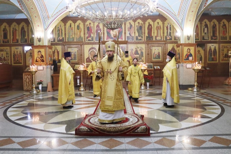 Его Высокопреосвященству сослужили иерей Георгий Малый, клирик собора и настоятель храма Рождества Пресвятой Богородицы п. Ключи иерей Сергий Лещев.