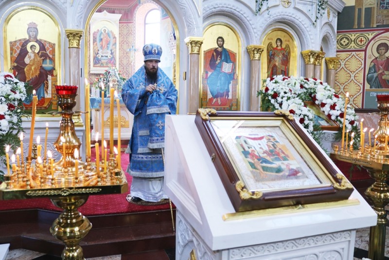 На богослужении вместе с прихожанами молились сестры монашеской общины Кафедрального собора. По отпусте Литургии было совершено славление Пресвятой Владычице нашей Богородице и Приснодеве Марии в честь праздника Ея Рождества.