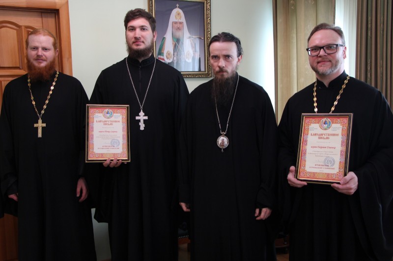 В епархиальном управлении состоялась встреча Архиепископа Петропавловского и Камчатского Феодора и священников-миссионеров иерея Георгия Улезько и иерея Петра Зорина, служивших на отдаленных приходах епархии.