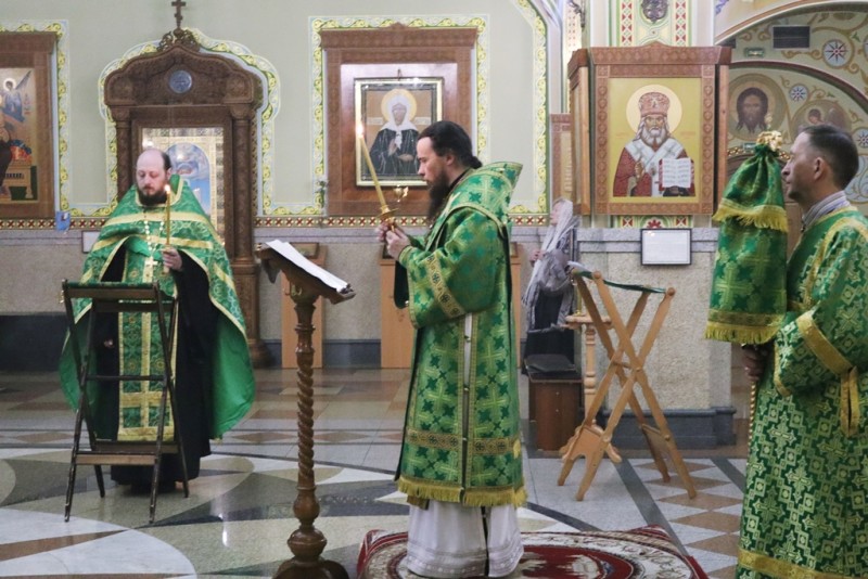 Вечером, 9 июня, в канун Отдания праздника Пятидесятницы, в Свято-Троицком кафедральном соборе города Петропавловск-Камчатский архиепископ Петропавловский и Камчатский Феодор совершил Параклисис — молебное пение с акафис