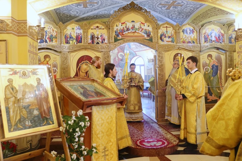 По окончании богослужения Архиепископ Феодор поздравил всех присутствующих с днем святых Апостолов Петра и Павла, покровителей столицы нашего края.