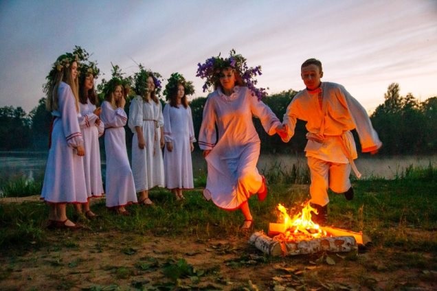 В то время проводились купальские обряды с магическими действиями, связанными с почитанием солнца. Считалось, чтобы повысить количество солнечного света и придать растениям больше тепла, нужно было повлиять земным огнем на огонь Божий. Для этого славяне уходили на ритуальные холмы или на поляны у реки, где жгли костры. Чтобы урожай был плодородным, парни и девушки прыгали через них, стараясь перепрыгнуть как можно выше, тем самым выше уродятся зерновые культуры. Также высокий прыжок символизировал удачу в замыслах.