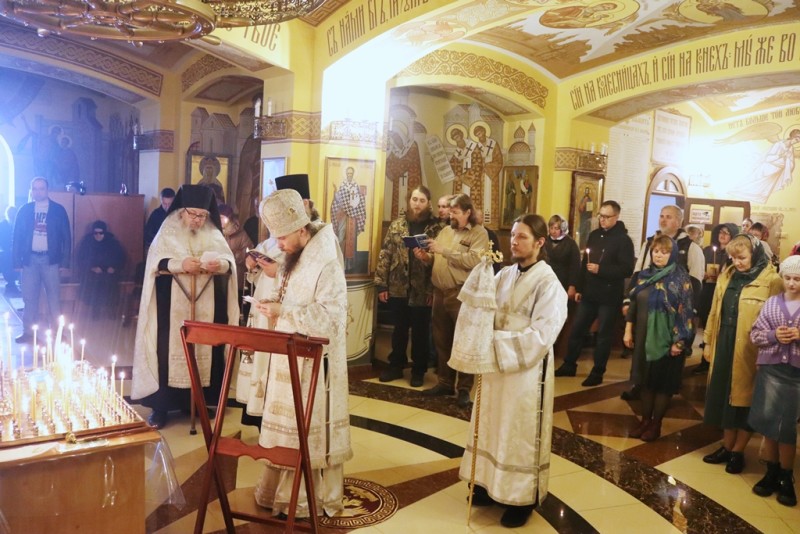 После богослужения Его Высокопреосвященство архиепископ Феодор обратился с архипастырским словом, в котором отметил важность молитвы о тех, кто уже переступил порог вечности, обо всех, в надежде воскресения усопших.