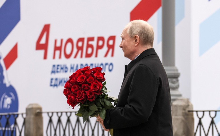 Президент РФ Владимир Путин возложил цветы к памятнику Кузьме Минину и Дмитрию Пожарскому на Красной площади. Традиционная церемония был приурочена к отмечаемому в стране Дню народного единства.