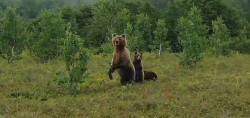 Сергей Лебедев напомнил, что при встрече с медведем нельзя бежать, не надо проявлять агрессию, надо встать в полный рост, поднять над собой руки, чтобы казаться больше и не провоцировать животное.
