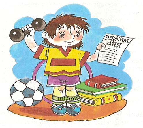 Режим дня. Под режимом понимают чёткий план деятельности на день, при котором ежедневно совершаются однотипные действия: чистка зубов, приём пищи, приготовление уроков, посещение секций, кружков, свободное время, сон. Когда школьник имеет распорядок дня, он быстрее и эффективнее адаптируется к учёбе, больше успевает, и в результате – учебный материал усваивается лучше, успехи в школе повышают самооценку, формируется позитивный настрой на учёбу.