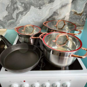 ✅ современная кухня, где есть вся необходимая посуда для приготовления и приема пищи, бытовая техника (холодильник, эл. плита, вытяжка, СВЧ, эл. чайник)