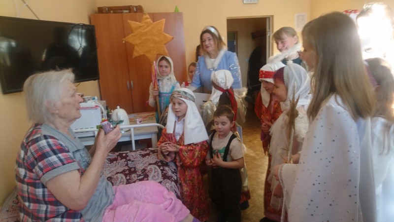 Воспитанники Воскресной школы Морского собора традиционно в Святочные дни посетили Паратунский интернат для престарелых и инвалидов. Руководитель школы Галина Дмитриевна Юлдашева со своими учениками показали рождественское представление и спели песни, посвященные празднику Рождества Христова. Дети поздравили и лежачих пациентов, поделились с ними радостью праздника.